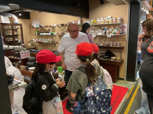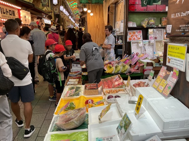 錦市場では、実際にお買い物もできました。お金のつかい方は子どもそれぞれでした。家族のお土産を買っている子や、いろんなお店でちょとずつかう子、500円全部を工夫してつかう子など子どもそれぞれのつかい方であふれていました。買ったものを見せてもらう時間がとても楽しかったです。錦市場のお店の方々も子どもたちに根気よく付き合ってくださりました。