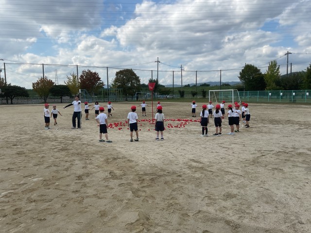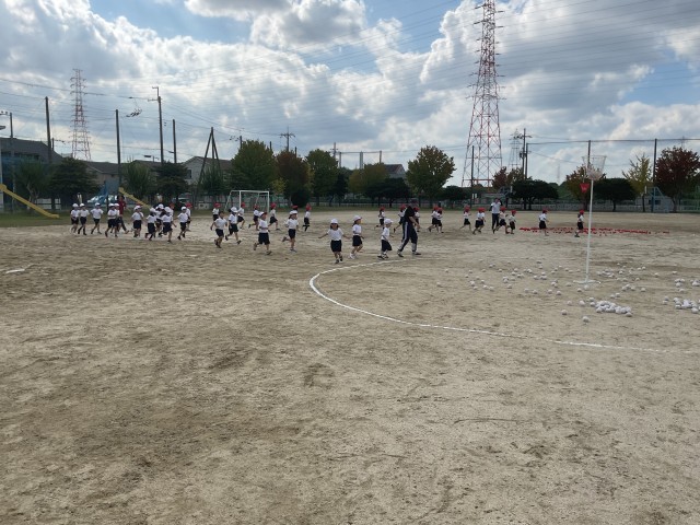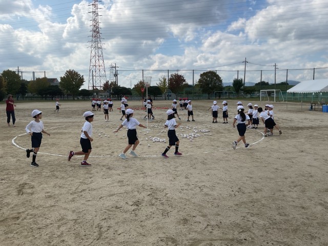 10月7日 弾ける笑顔と真剣勝負!1年生「ダンシング玉入れ」練習中