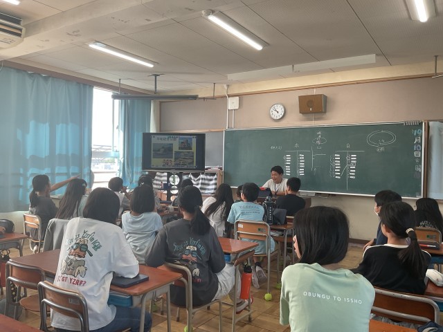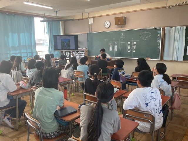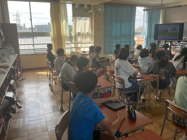 先生からは、テレビにたくさんの画像が映し出され、子どもたちは一斉に集中しました。