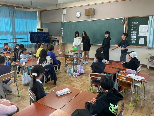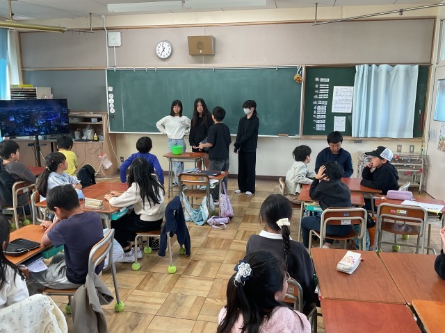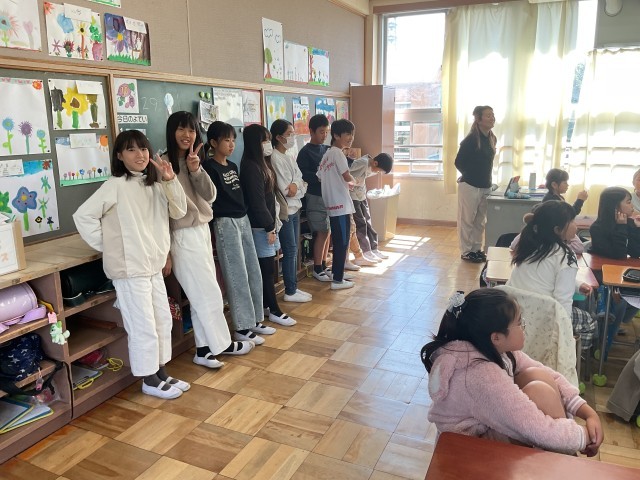 修学旅行で平和学習を控える6年生が3年生の教室を訪問し、折り鶴の折り方を教える交流会が行われました。これは、平和への思いを込めた千羽鶴を完成させ、修学旅行先の広島などに持参するための取り組みの一環です。