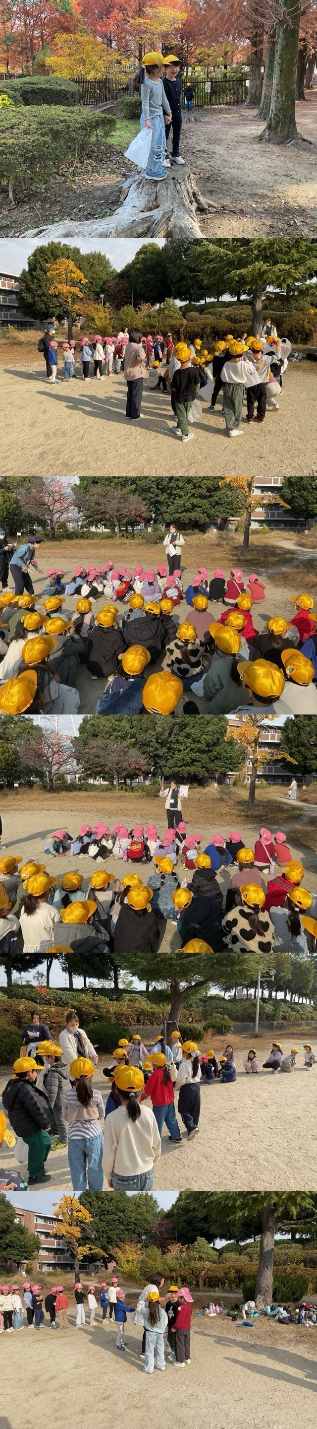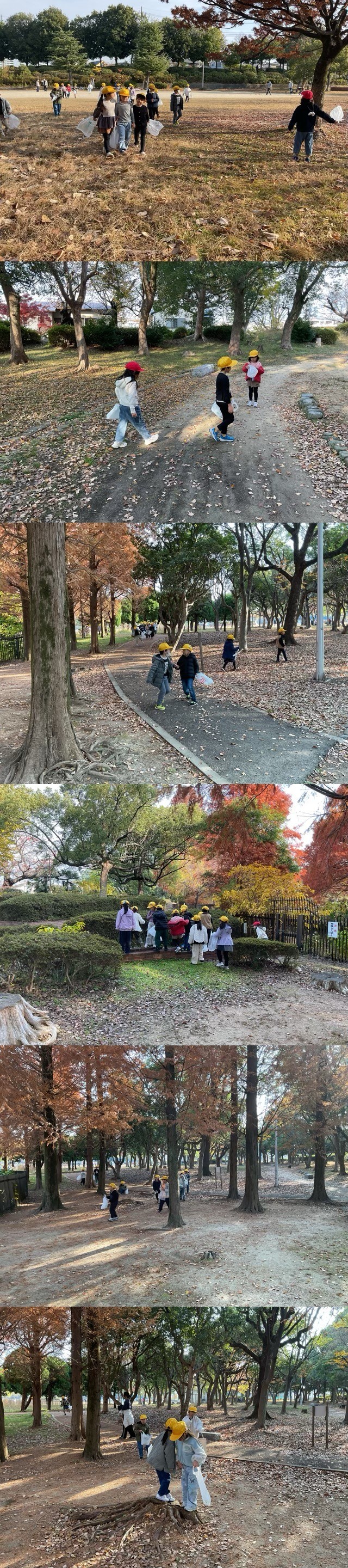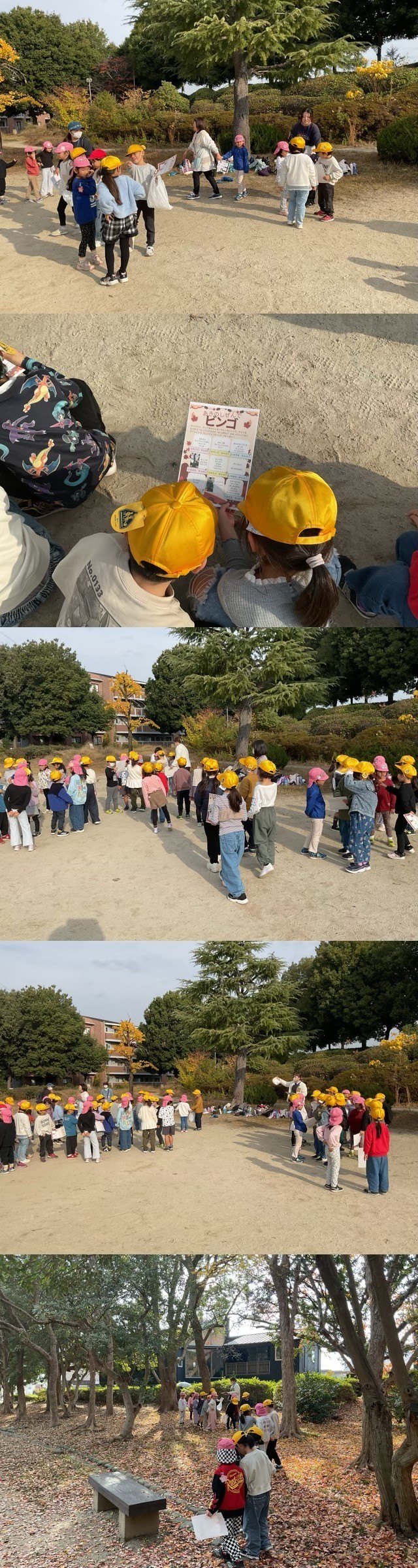 澄み切った秋空の下、子どもたちは公園へ向かい、「秋見つけビンゴ」を通じて、秋の自然を一緒に満喫しました。
