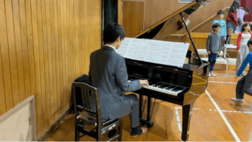 今回も、プロのピアニストである金子 剛(かねこ つよし)さんに特別に伴奏をしていただき、4年生の歌声と演奏が、金子さんの奏でる豊かで力強いピアノの音色と一つになり、会場全体に響き渡りました。素晴らしいハーモニーに、感動の拍手が送られました!