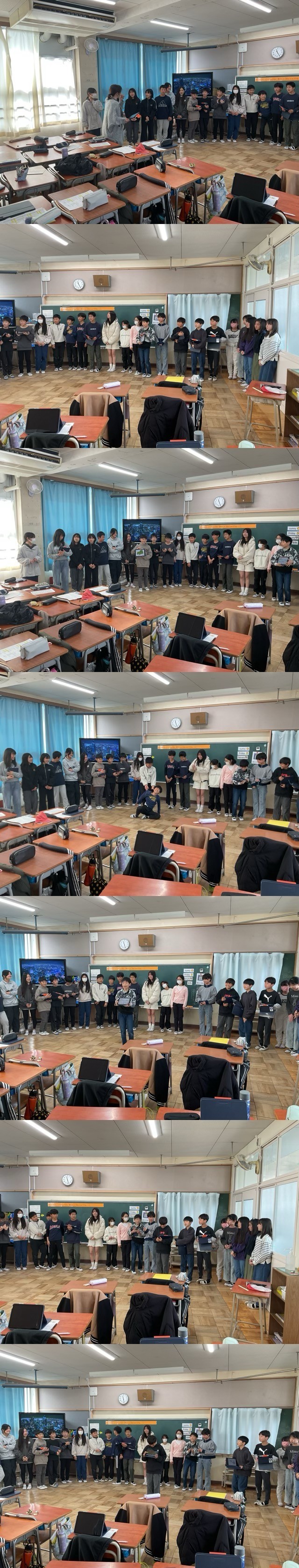 また、外国語の授業では、小学校生活6年間を振り返るスピーチをクラス全員で発表し合いました。 英語で自分の思いを伝えるのは難しかったですが、互いの成長を感じられるとても温かい時間になりました。