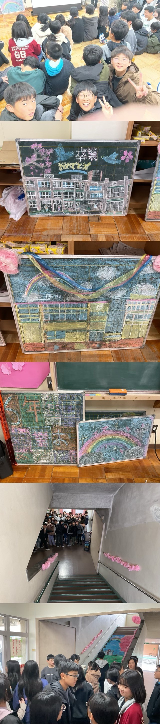 卒業まで残り3日となった本日、6時間目の図工室で素敵なサプライズが繰り広げられました。