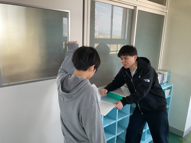 細やかな配慮: 次に使う下級生のことを思い、机の端を丁寧に揃える手つき。
