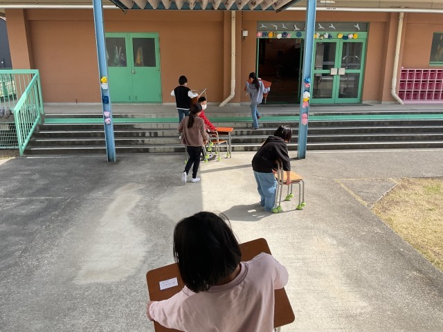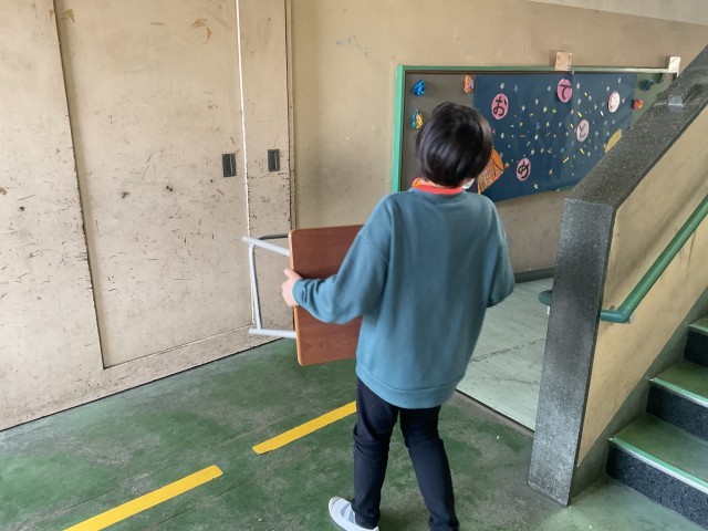 5年生にとっては、これが「最上級生」としての最初の大仕事。 重い机を運ぶその背中は、この1年で驚くほど大きく、たくましくなりました。