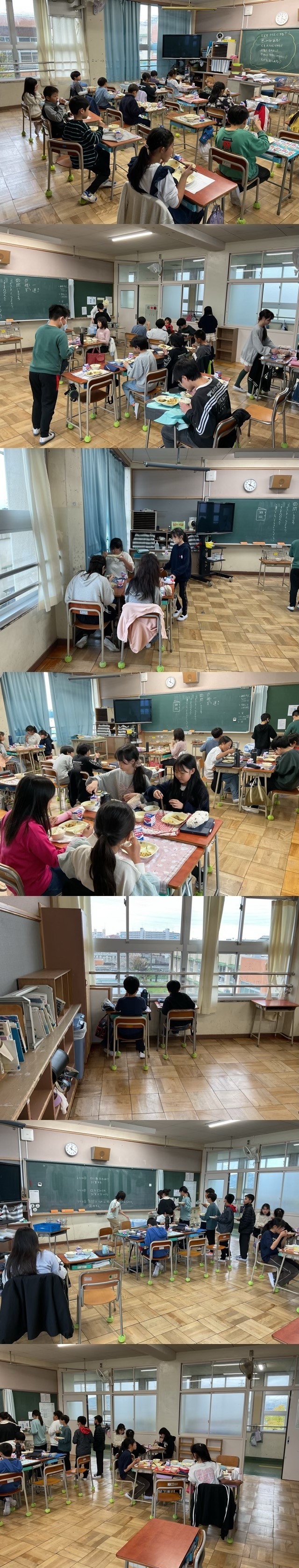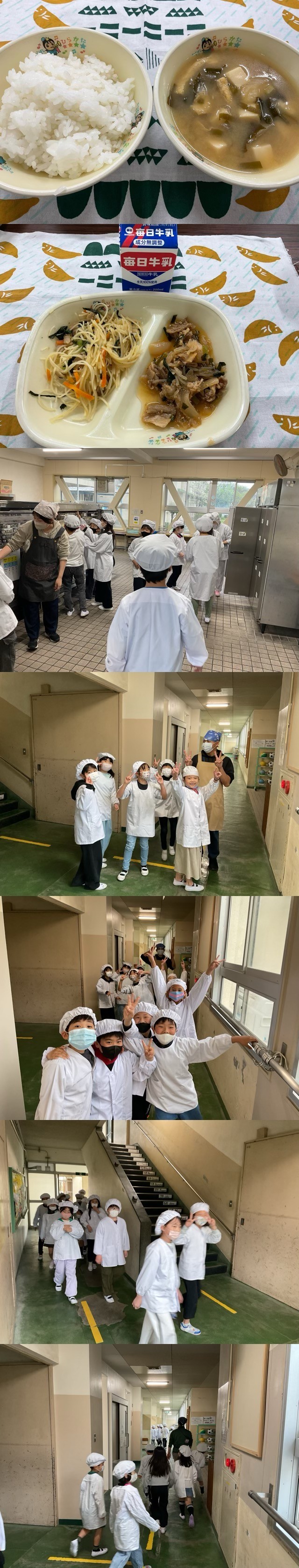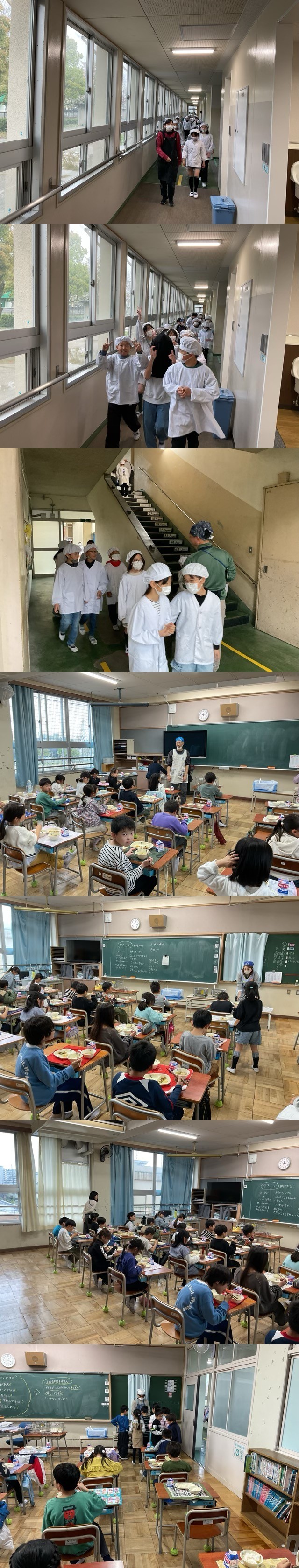 1年生の時とは違い、2年生は自分たちでテキパキと盛り付けを行い、高学年にもなると、汁物を一滴もこぼさず、均等な量で配る「職人技」のような手際の良さが見られました。