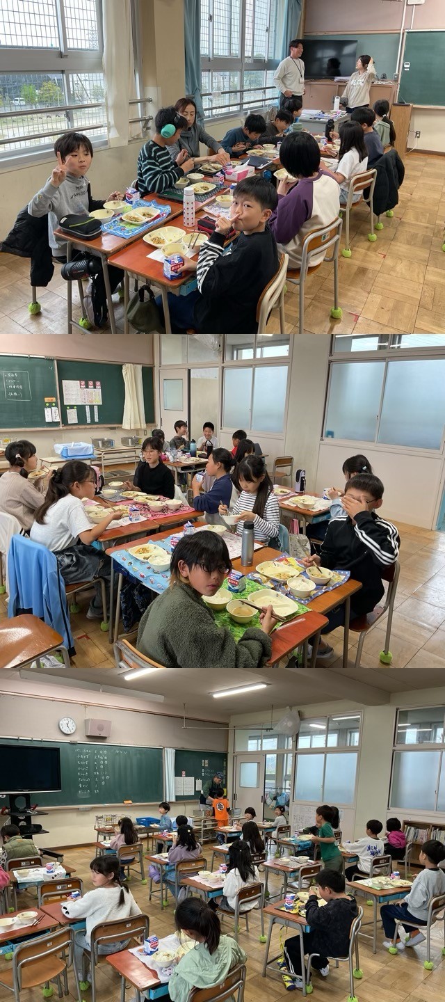 甘辛いタレが絡んだ豚肉と野菜で、ごはんがどんどん進みます。多くの児童が「これなら何杯でも食べられる!」とモリモリ口に運んでいました。