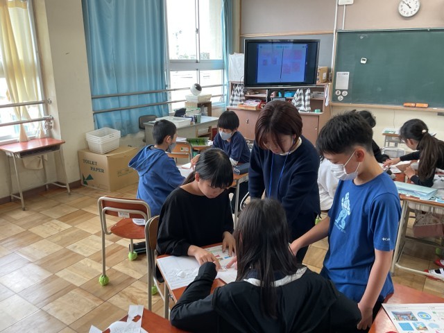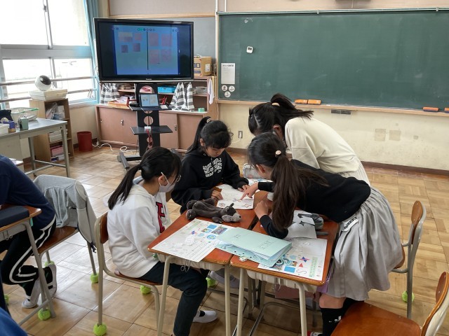 ワークシートの下部にある対話コーナーでは、登場人物の「しほさん」と「こうたさん」の言葉をヒントに、クラス全体で議論が深まりました。