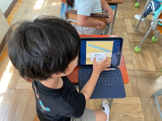 「チョコレートが30円だから、あと20円分買えるぞ!」「ポテトチップスを入れると100円を超えちゃう……」 子どもたちは、タブレット上で商品を入れ替えながら、一生懸命計算に取り組んでいました。