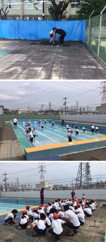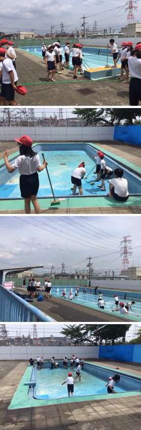 昨日雨天で延期になったプール清掃を本日実施しました。