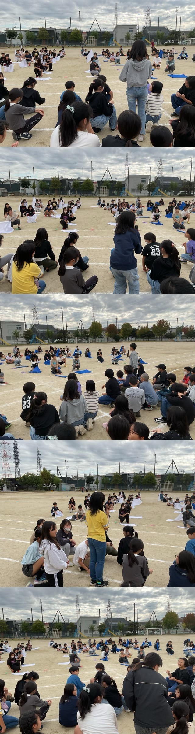 運動会前日のこの交流は、学年の壁を超えてお互いの頑張りを認め合い、運動会にかける熱い思いを共有する貴重な機会となりました。