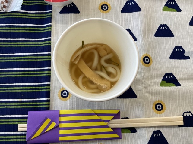 3年生が届けてくれたうどん・・・おいしかったです。ありがとう!!