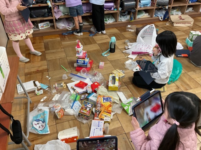 図工の授業で、子どもたちが目を輝かせながら「空き箱」を使った制作活動に取り組みました。