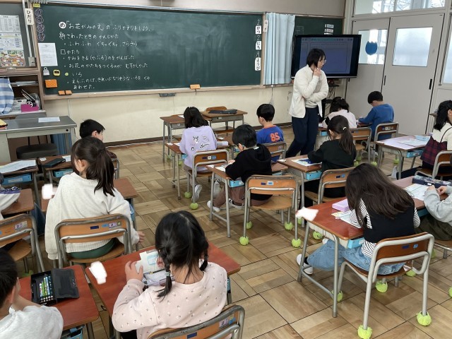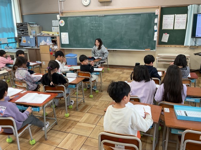 国語の授業では、教材『おとうとねずみチロ』の音読練習に、児童たちが熱心に取り組みました。物語の世界に入り込み、表現力を磨く活気あふれる時間となりました。