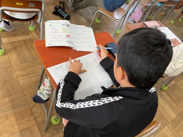 今日も子どもの習熟度やつまずきの傾向に合わせたきめ細やかな指導を目指し、学年全体を3つのグループに分けて授業を実施しました。