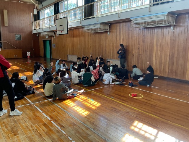 一瞬、子どもたちから残念そうな声が漏れましたが、先生がすかさず「みんな、すぐに体育館へ移動!続きは中でやろう!」と指示。子どもたちは一斉にグラウンドから駆け出し、大きな混乱もなく体育館へと移動しました。