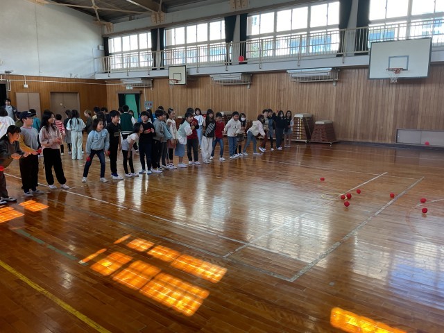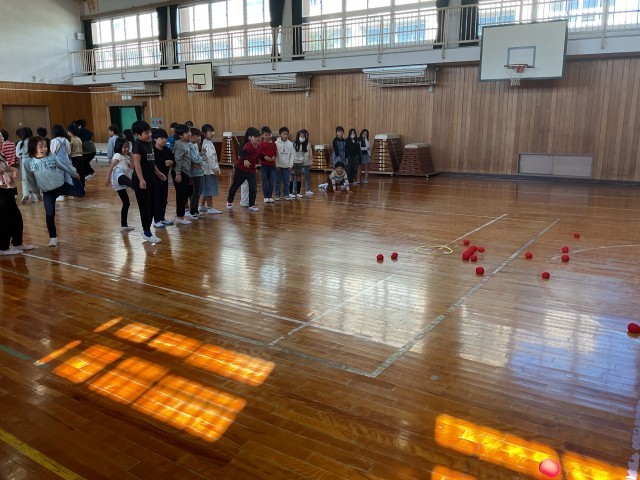 授業の導入で使われたのは、おなじみの玉入れの球です。