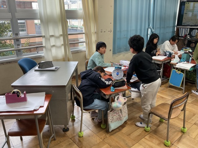授業開始時、先生は児童に「今の自分が一番頑張りたい、できるレベル」のステーションを選ばせました。