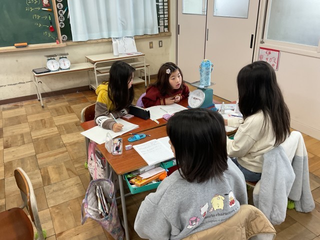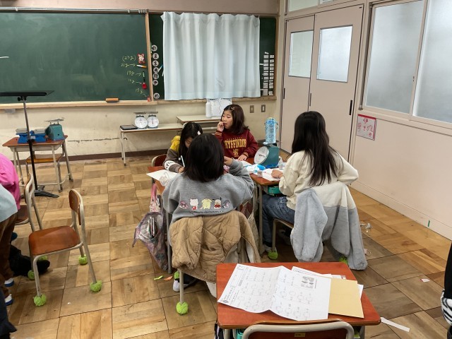 • 実験中は、「もっと重いものを測ってみよう!」「この2つの合計の重さはいくつになるかな?」など、班の中でたくさんの話し合いが行われ、みんな興味津々で取り組んでいました。