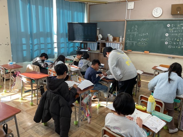 そこで、子どもたちがよりきめ細やかな指導を受けられるよう、学年を三つのグループに分けた「3分割授業」を開始しました。