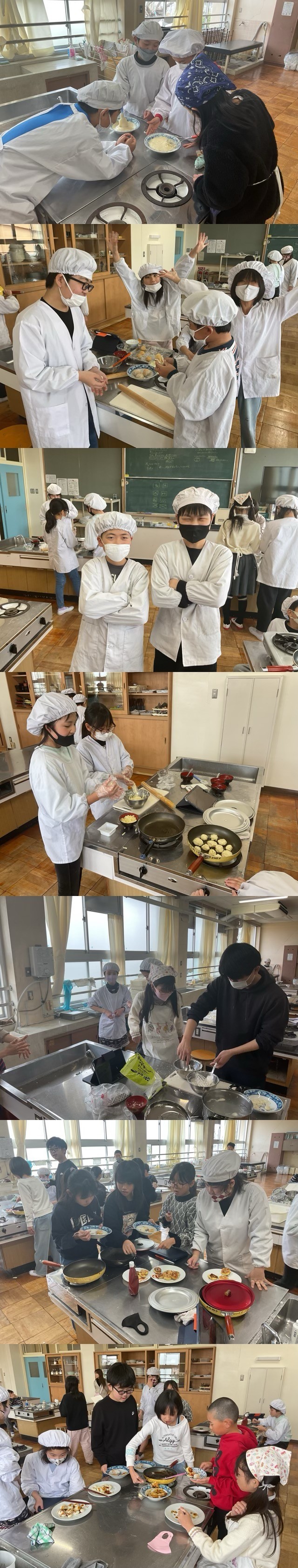 調理室には、白玉粉特有の「耳たぶくらいのやわらかさ」を一生懸命に作る子どもたちの姿がありました。各班が工夫を凝らしたメニューを紹介します。