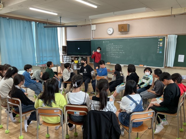 まず行われたのは、全員で顔を見合わせて行う「円になっての話し合い」です。 あえて机を下げ、円の形に座ることで、お互いの表情がよく見えるリラックスした雰囲気が生まれました。