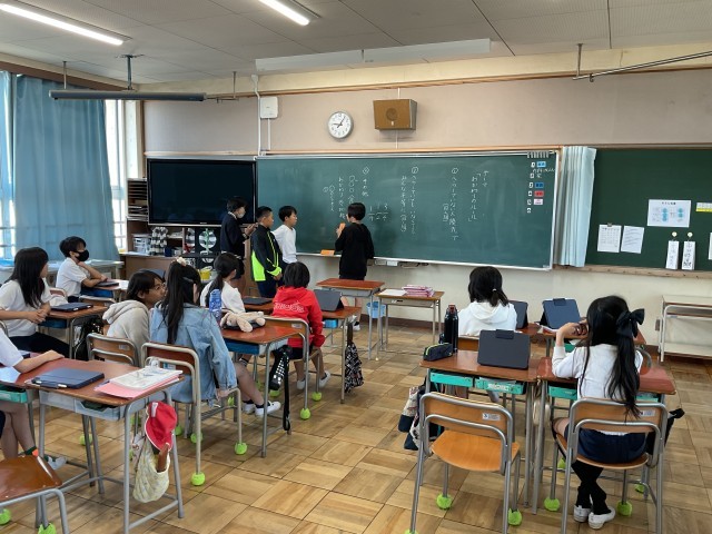 そ自分の言葉で意見を発表。「みんなが笑顔で過ごせるクラス」「頼りにされる6年生」など、最高学年らしい頼もしいキーワードが次々と飛び出しました。