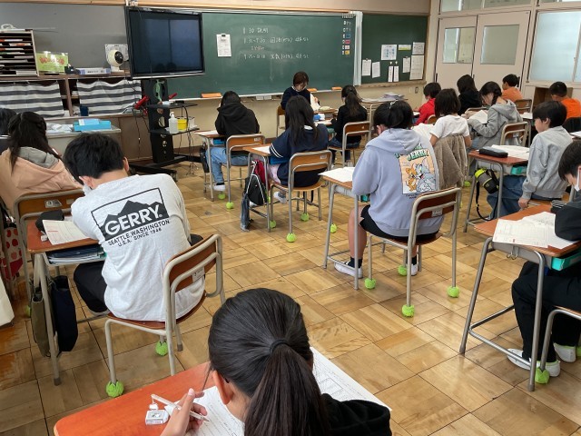 6年生にとっては、いつもの単元テストとは違う「冊子形式」の試験。独特の緊張感が教室を包みました。