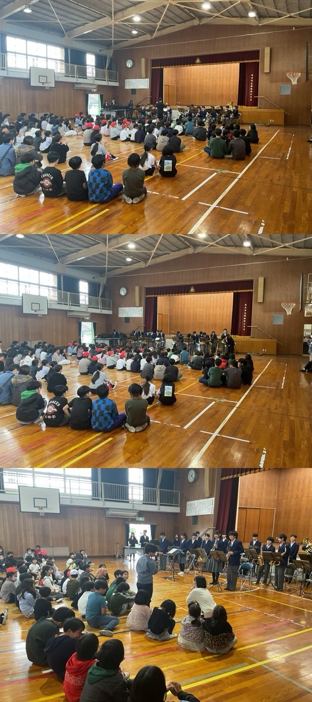 会場全体で手拍子をしたり、リズムに乗ったりと、音楽の楽しさを肌で感じることができる、あっという間の素晴らしい時間でした。目の前で見る先輩たちの立派な姿は、本校の子どもたちにとっても大きな刺激と憧れになったことと思います。