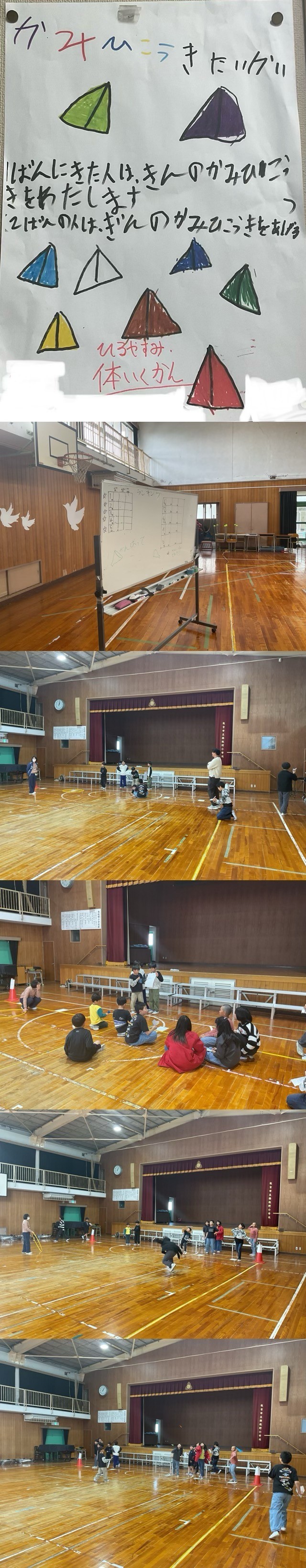 元気いっぱいの掛け声とともに、色とりどりの紙飛行機が大空(体育館)へと舞い上がりました。