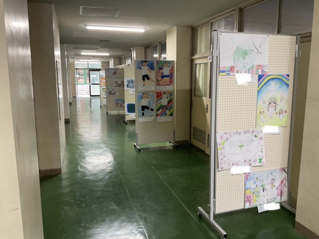 渚西中学校で本校児童の作品が展示されている様子も併せてご覧ください。