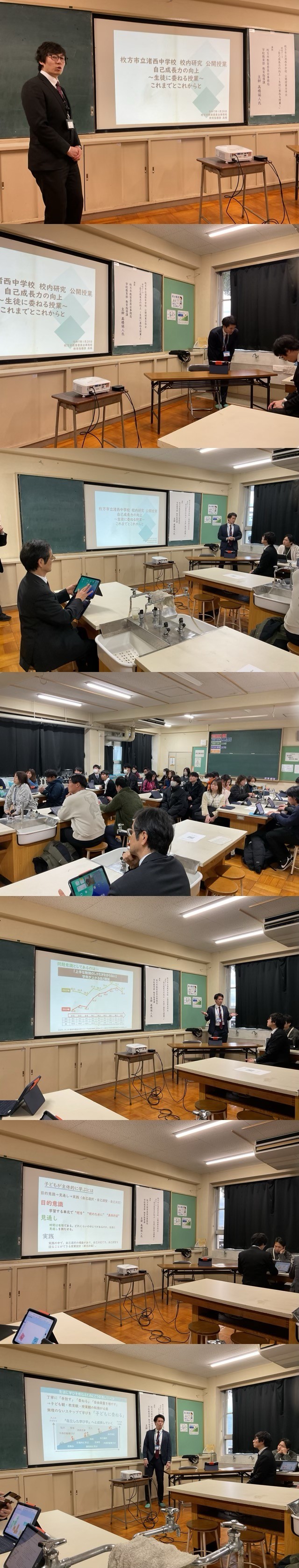 本授業には、講師として枚方市教育委員会 教育指導課の高橋主幹、そして桐山委員にもご来校いただきました。 専門的な視点からのご指導・ご助言をいただき、質の高い授業づくりに向けた貴重な機会となりました。