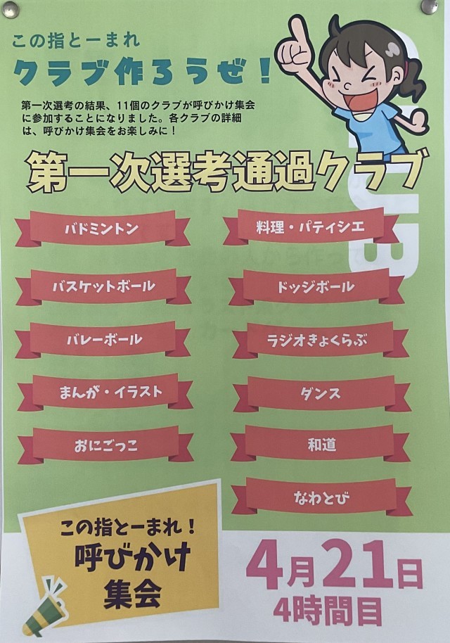 クラブ設立に向けて、緊急募集のポスターが掲示されました。