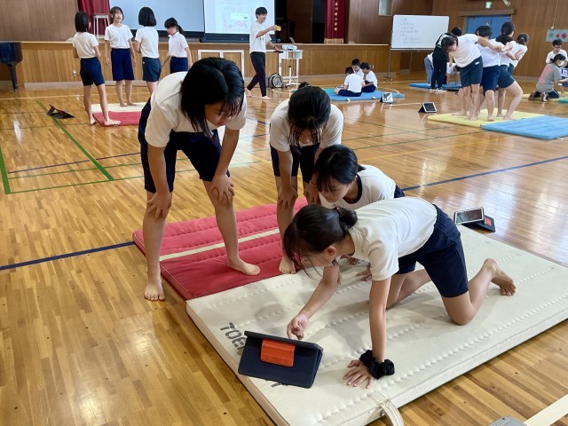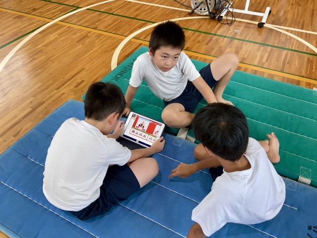 グループごとに「どんな技に挑戦するか」「誰がどの役を担うか」を話し合い、実際に試しながら練習が進んでいます。