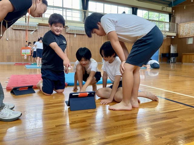 タブレットを使って動きを確認したり、役割を工夫して調整したりしながら、一人一人の思いが生かされています。