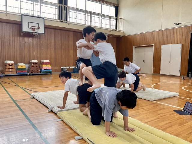 5・6年生の運動会練習は、子どもたち自身がアイデアを出し合い、形をつくっていくスタイルで進んでいます。