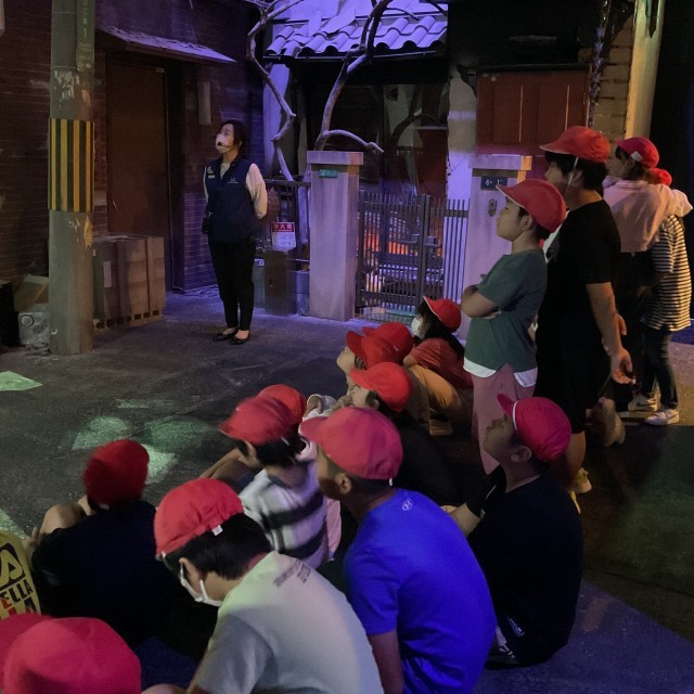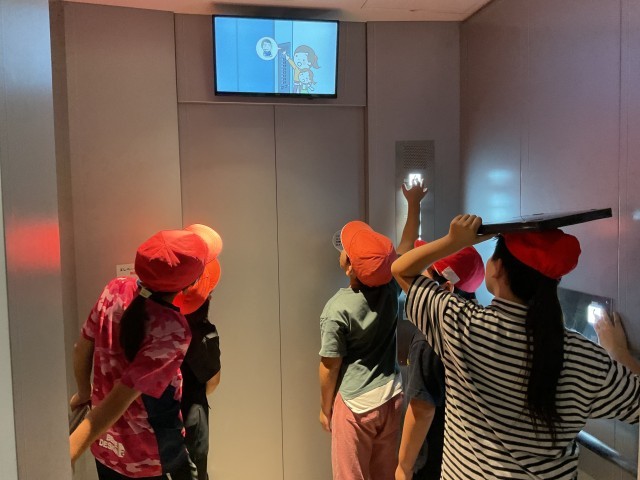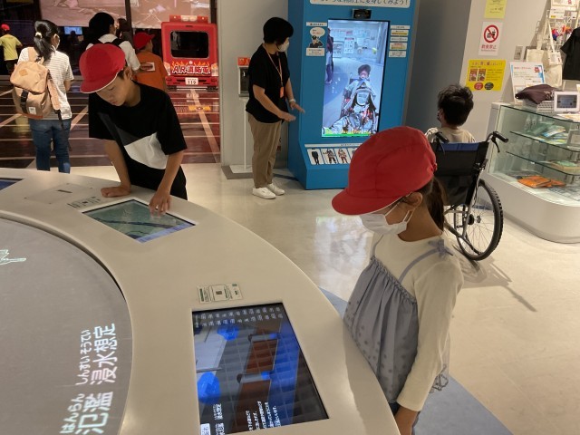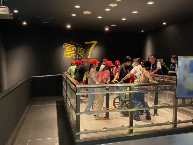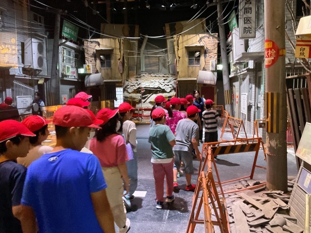 防災センターでは、震度7の体験をしたり、地震が起きた時に壁が崩れて行く様子をプロジェクトマッピングで体験したりしました。