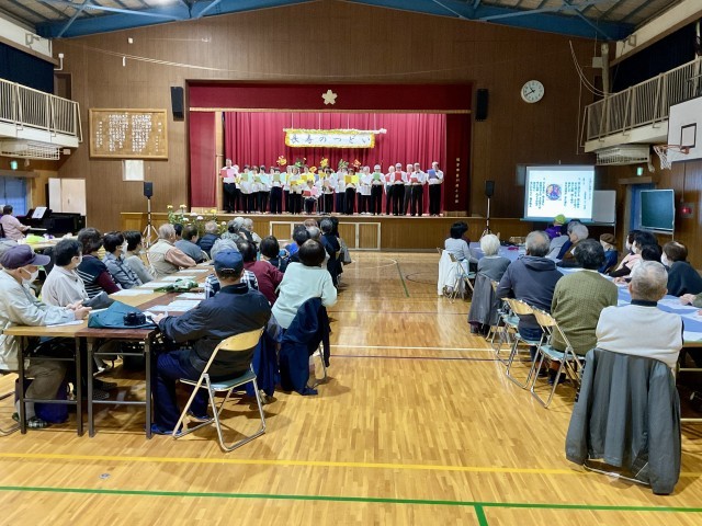 その後は、地域の皆さんによるコーラスが披露され、「青い山脈」や「てんとう虫のサンバ」など、懐かしい名曲が体育館いっぱいに響きました。
