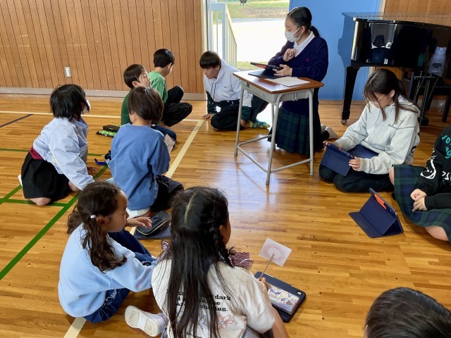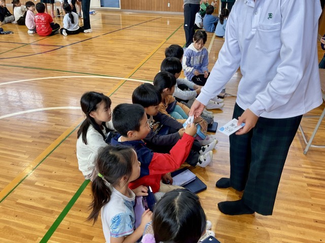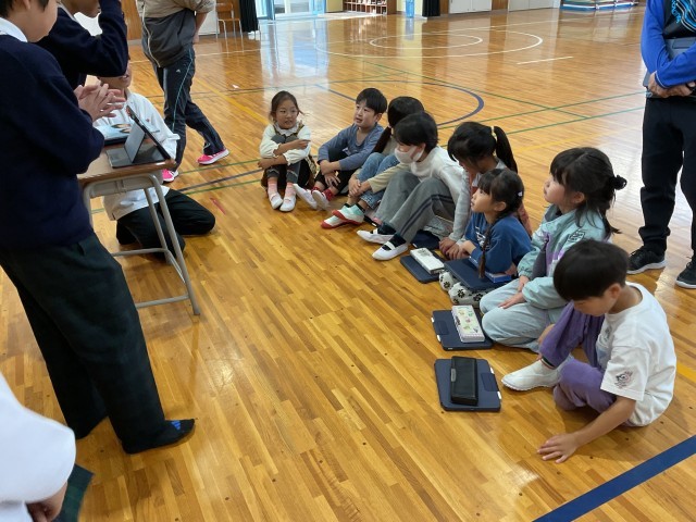 防災についてグループで調べてきたことを1年生から3年生に分かりやすく教えてくれました。
