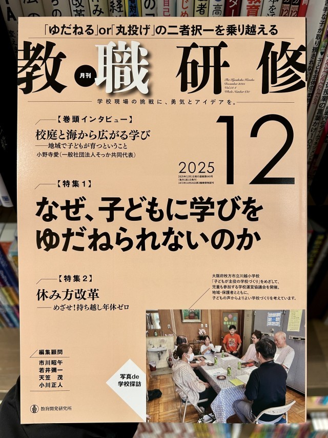 以前に学校だよりでもお伝えしていた件ですが、本日発売の全国教育誌『教職研修』12月号の表紙に、本校の取組が掲載されました。