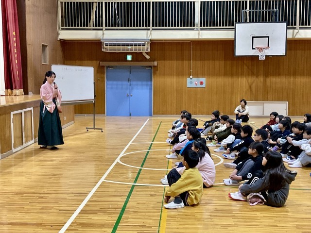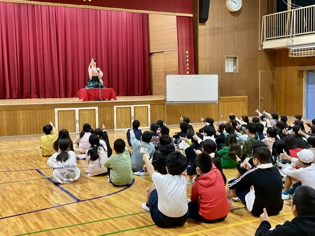 本日の2時間目、笑い教育家・笑ってみ亭 じゅげむさん(一般社団法人 笑ってMe 代表理事)をお招きし、3~6年生を対象に「人を傷つけない笑い」をテーマとした特別授業を行いました。