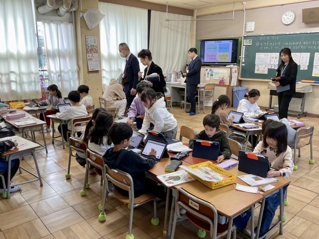 枚方市教育委員会から5名の指導主事等が参観に来られ、笠原先生の授業実践を見ていただきました。