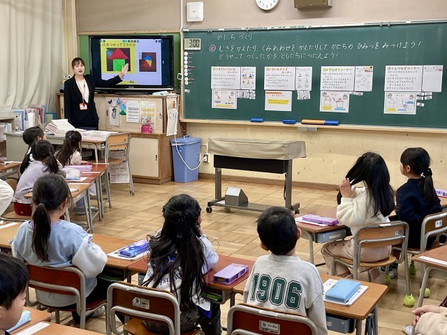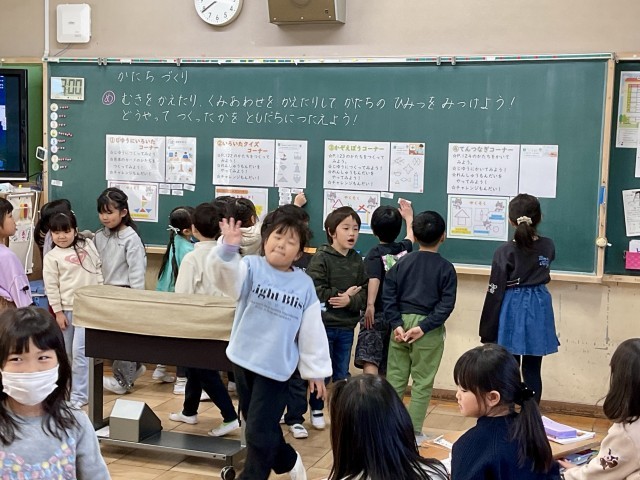 先日、1年生で算数「かたちづくり」の授業が行われました。
