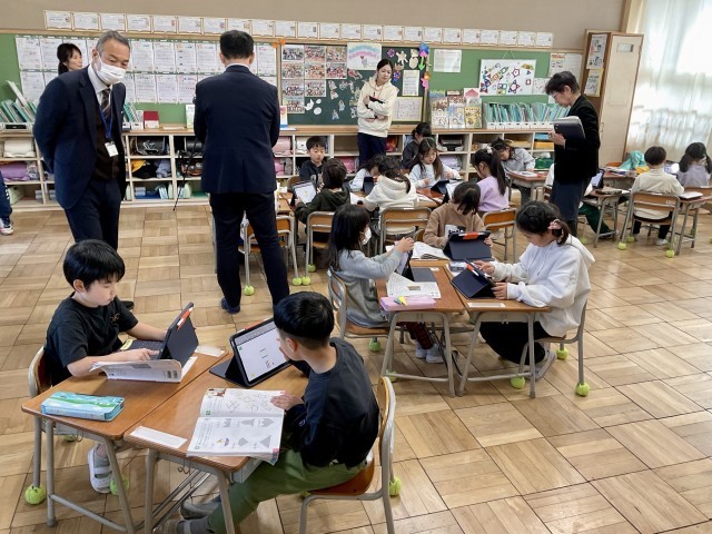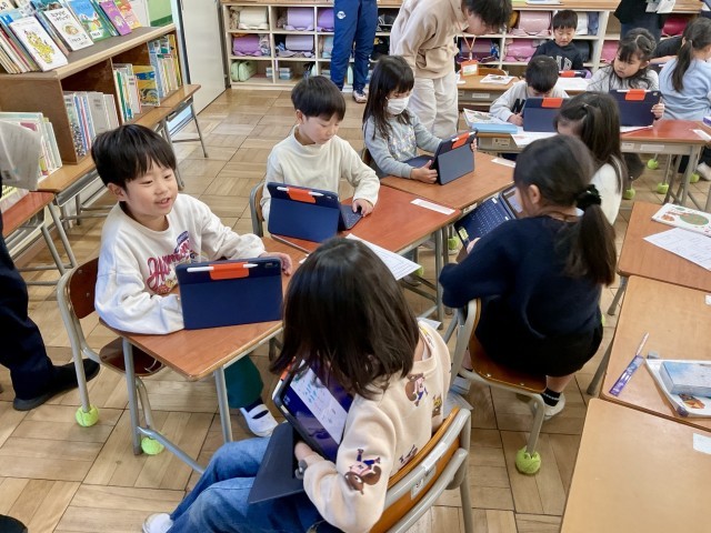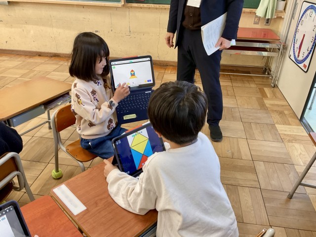 1人でじっくり考える子、友だちと相談しながら試す子、色紙を操作してかたちを作る子、タブレットを使って形を動かしながら確かめる子――教室のあちこちで、それぞれのペースで学びが進んでいました。