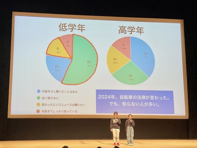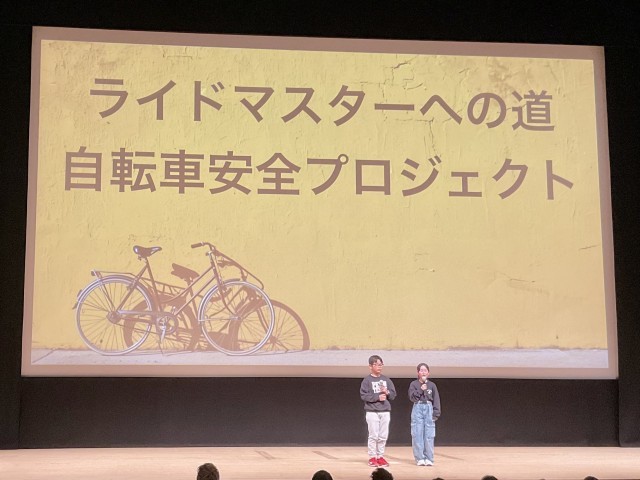 4年生の2人は、「自転車安全プロジェクト」の成果を発表しました。
