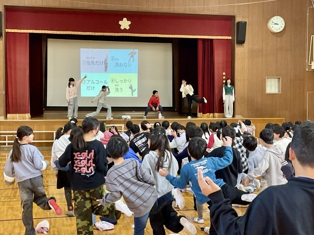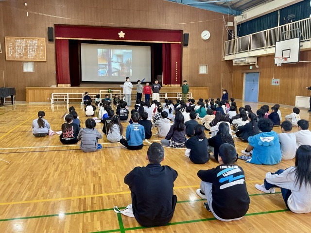 委員会の子どもたちは、全校のみんなに伝わるようにと、動きを交えながら工夫いっぱいの発表をしてくれました。実際に体を動かしてみせたり、クイズ形式で問いかけたりと、聞いている側も自然と前のめりになる内容でした。