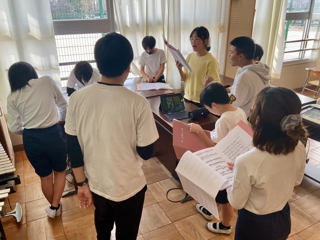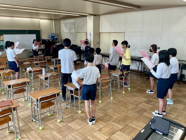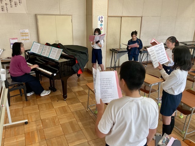 音楽の時間には、卒業式で歌う合唱の練習に取り組んでいます。