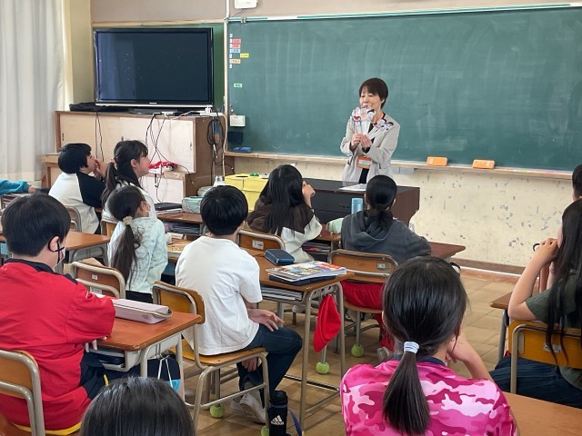 今日は4・5・6年生のクラスに行き、自己紹介をしてくれました。