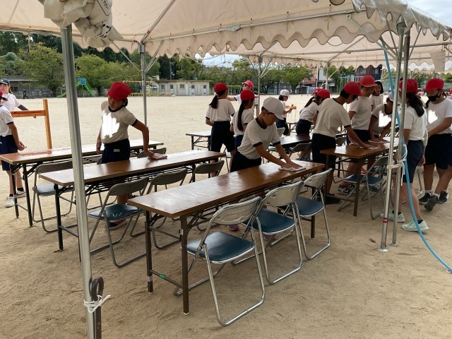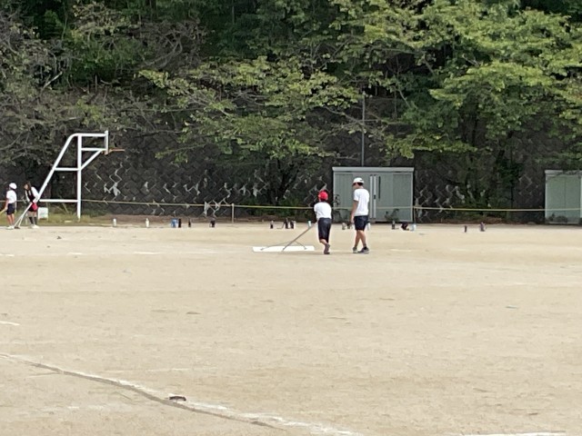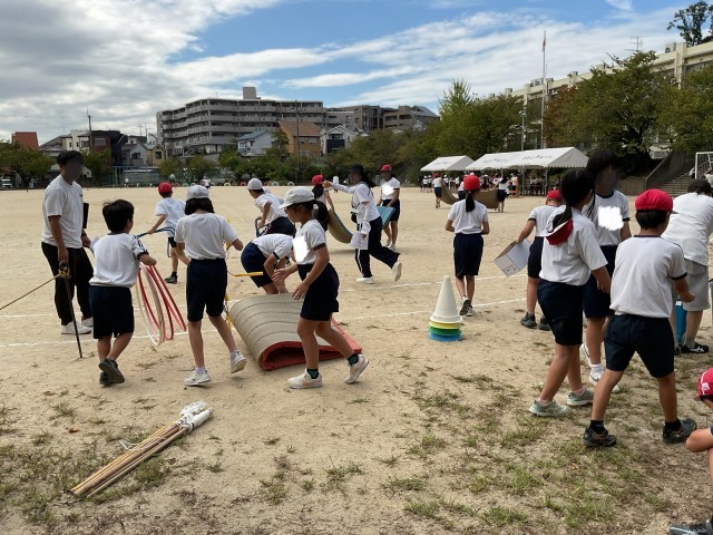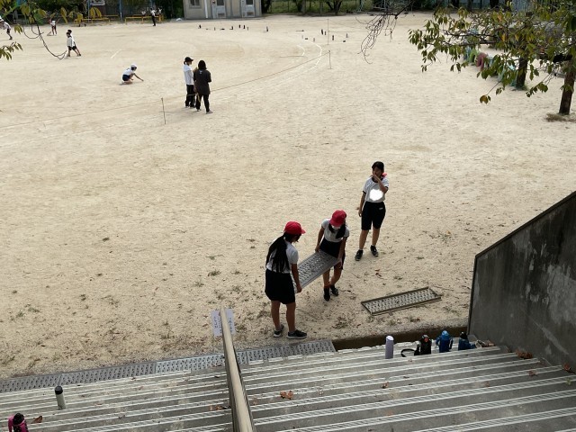 10月10日。5年生と6年生が明日の運動会の準備をしてくれました。